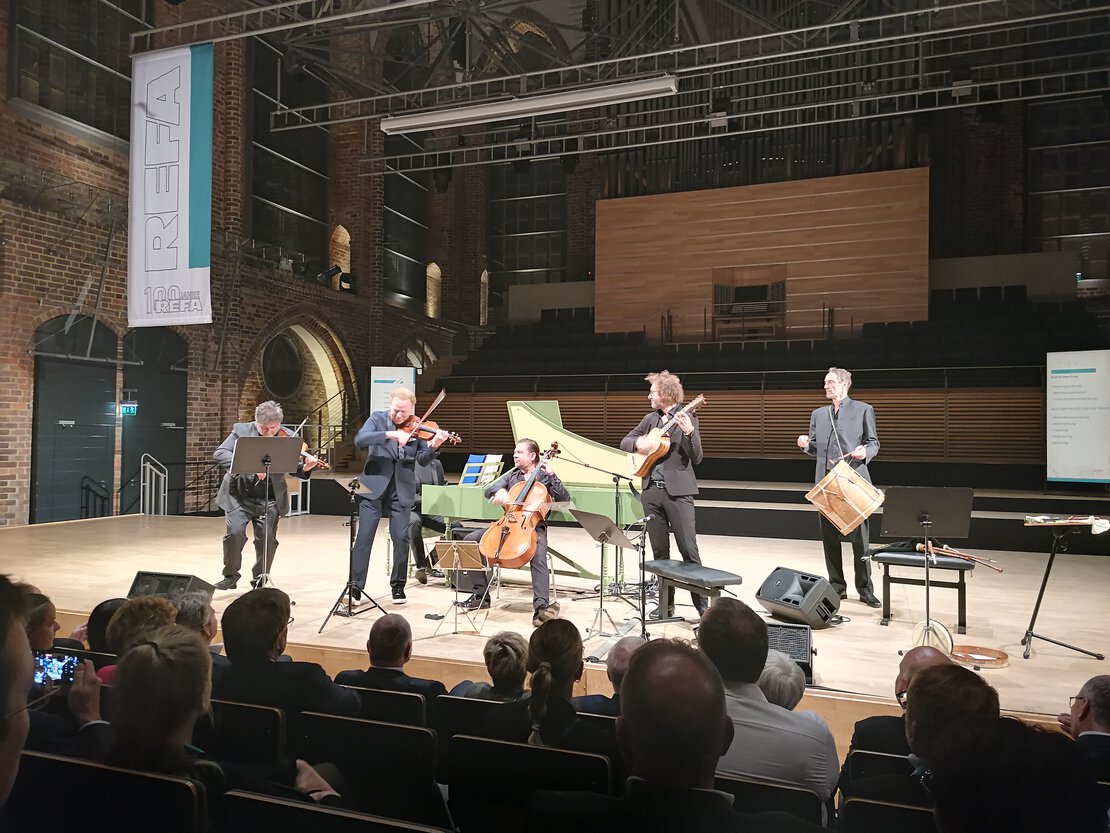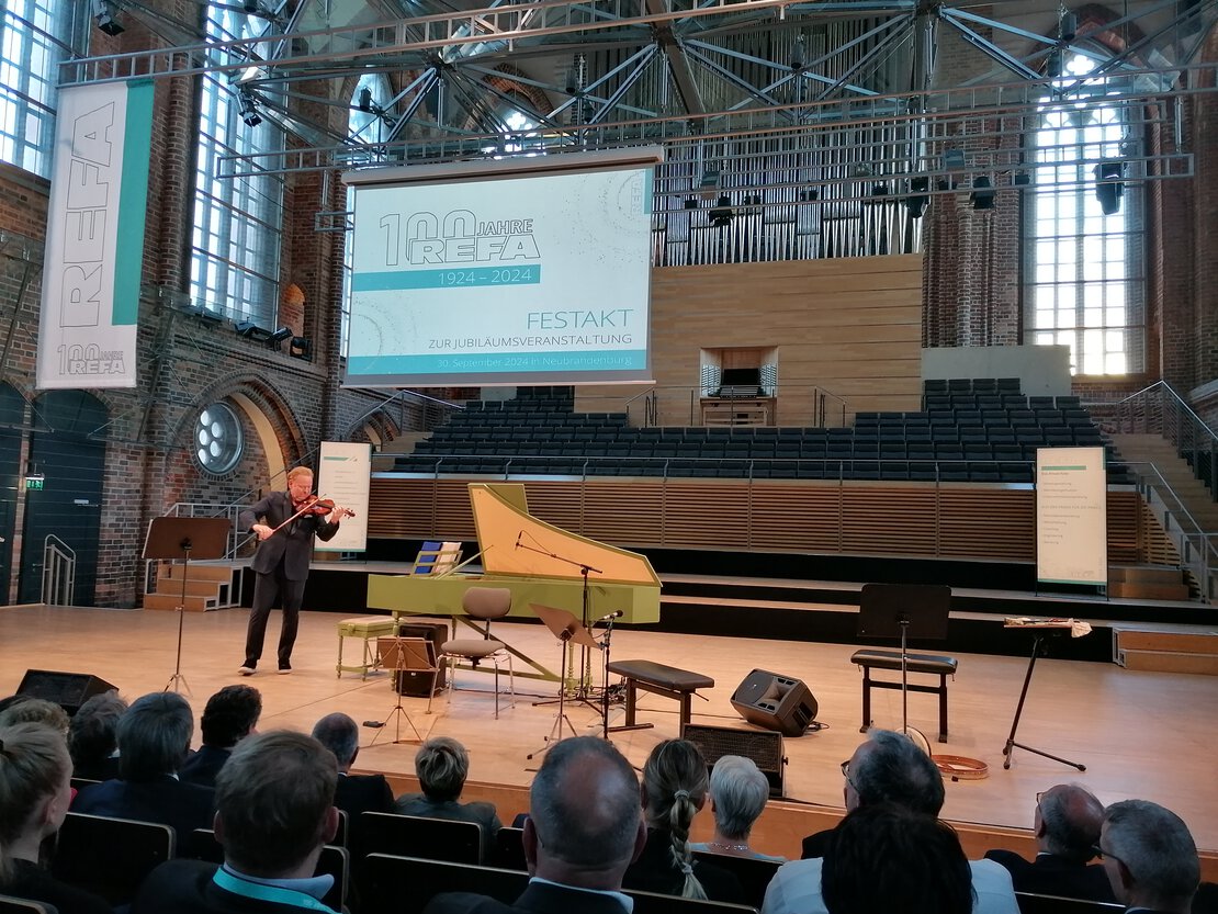 Der Höhepunkt des Abends: Der feierliche Festakt in der Konzertkirche Neubrandenburg bildete den krönenden Abschluss der Jubiläumsfeier. Zahlreiche Ehrengäste aus Politik, Wirtschaft und Wissenschaft würdigten den Beitrag von REFA zur Arbeitsorganisation. Den musikalischen Höhepunkt setzte ein einzigartiges Konzert mit dem renommierten Geiger Daniel Hope und dem AIR Ensemble, das unter dem Motto „Barocke Entdeckungen auf musikalischer Zeitreise“ das Publikum verzauberte.